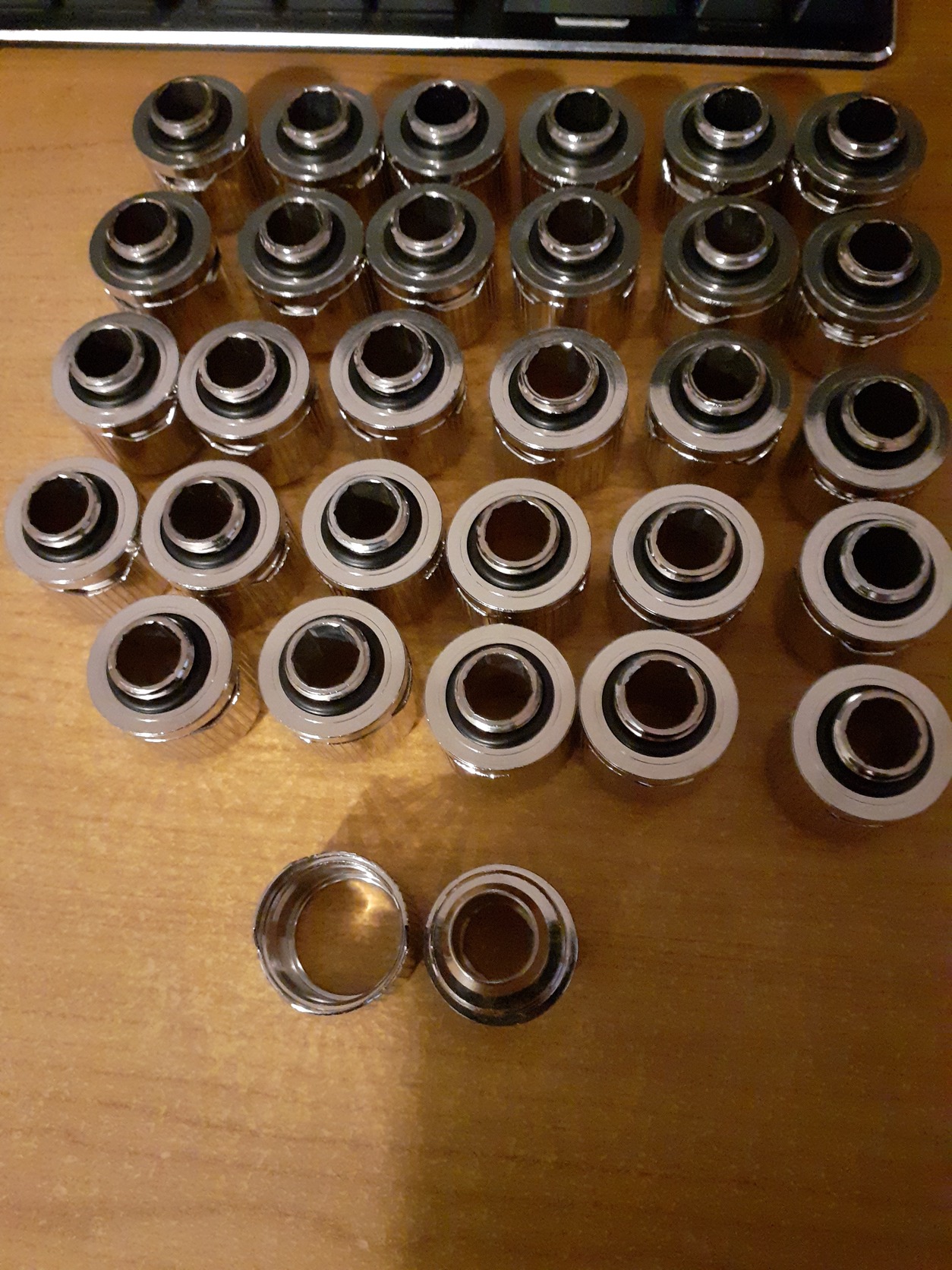 Eladó 36 db EK-Quantum Torque STC 12/16 - Nickel fitting, Merlinhardvertől és EKWB-től vettem őket vegyesen. Mikor kiszereltem a fittingeket lecseréltem a tömítést az összesen, okom nem volt rá, de filléres tétel cserébe akár nagyobb kártól is megóvhatja az embert. Eladás oka: Watercool Heathkiller EPDM 16/10-re váltok, sajnos ahhoz 10/16-os fittingek kellenek. Minimum vásárlási mennyiség: 6 db.