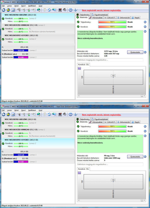 2 db., 1 TB 5400 WD RED WD10Efrx: 6000 Ft., /db.1 db., 4 TB 7200 WD GOLD WD4000Fyyz: 21 500 Ft., /db.