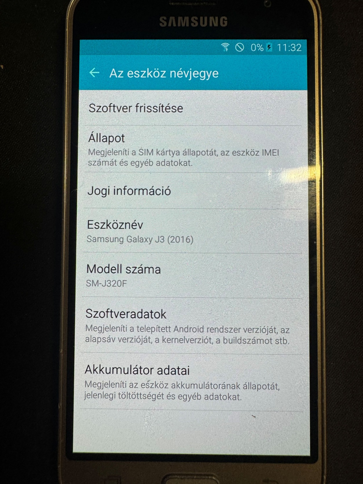 Galaxy J3 2016 SM-J320F ( bekapcsol, hátlap picit hiányos)