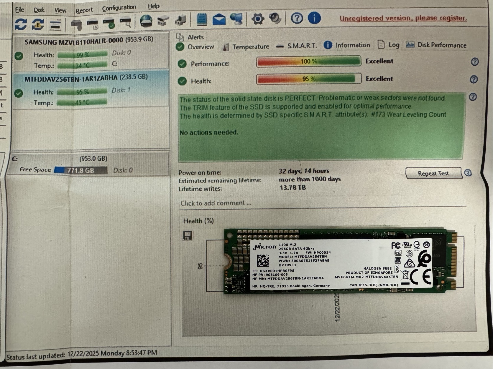 1. Micron - MTFDDAV256TBN - 256 GB - SATA M.2 SSD - HD Sentinel szerint 100/95 - 7,000 HUF