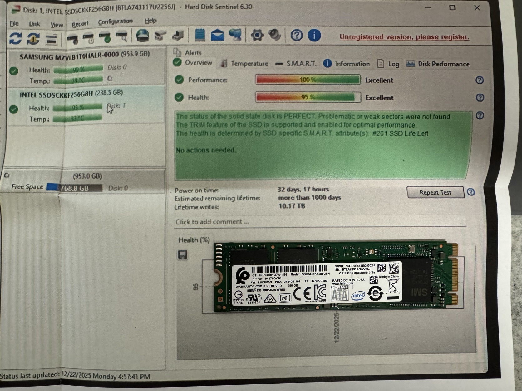 2. Intel - SSDSCKKF256G8H - 256 GB - SATA M.2 SSD - HD Sentinel szerint 100/95 - 7,000 HUF