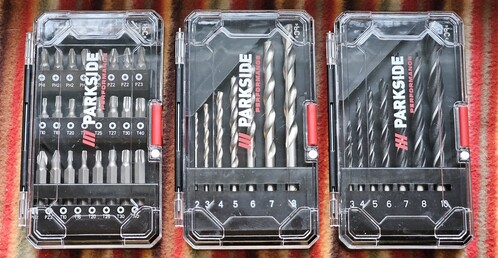 Eladó a képen látható 3 darabos Parkside Performance fúrószár és bitkészlet szett.
