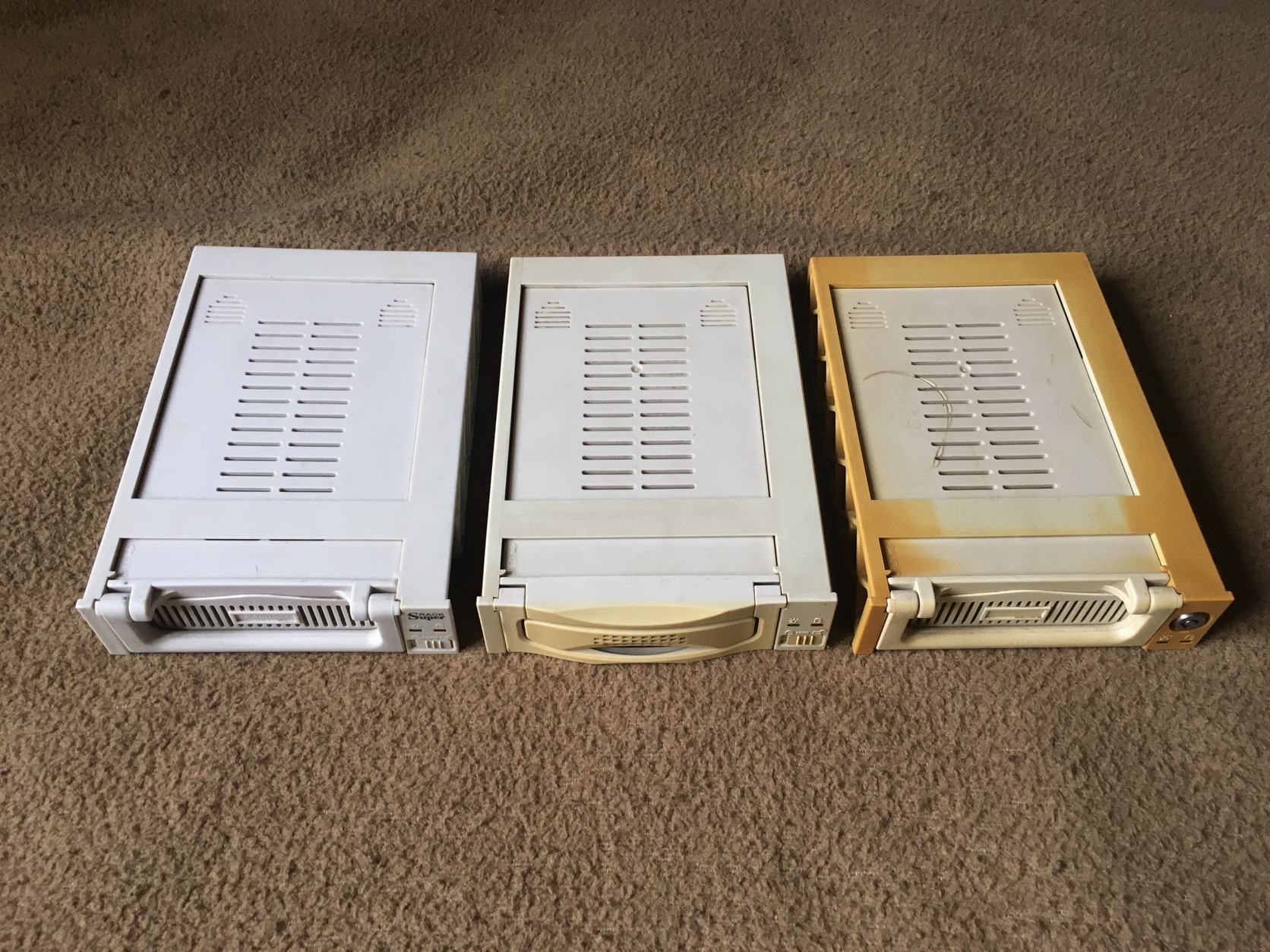 Eladó a képen látható 3 db IDE csatlakozós mobil rack, kerettel és tálcákkal, mind a három darabot kipróbáltam működnek.