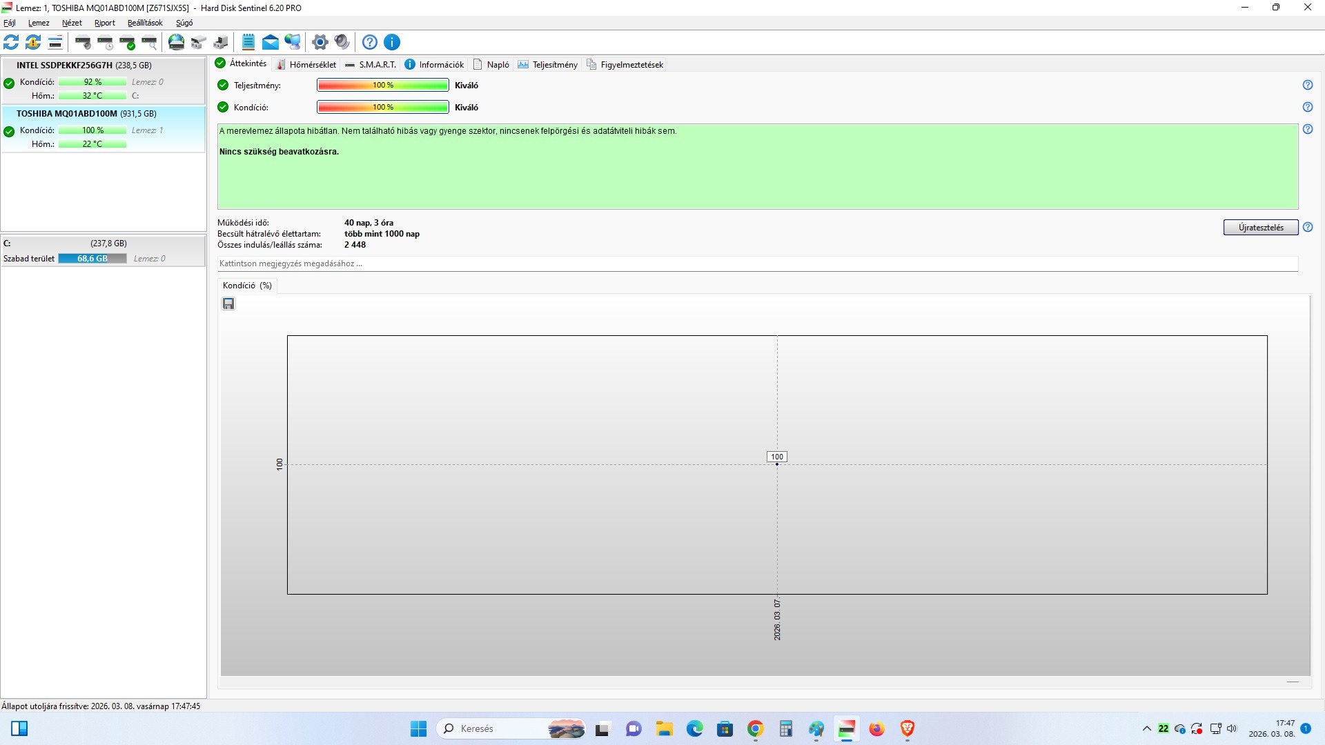 Képen balról jobbra:1 - WD - 2013 év - 100/100 - 72 nap,2 - WD - 2014 év - 100/100 - 469 nap,3 - Toshiba - 2016 év - 100/100 - 40 napKépek ma készültek.Ár - darab ár.Ha egyben mindhármat viszed mpl/fox csomagautomata árát fizetem.Kérdezz!