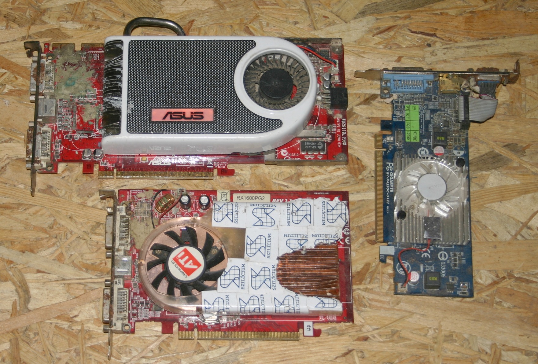 3db régi ázott videókártya. Sajnos rossz helyen tárolták őket.
