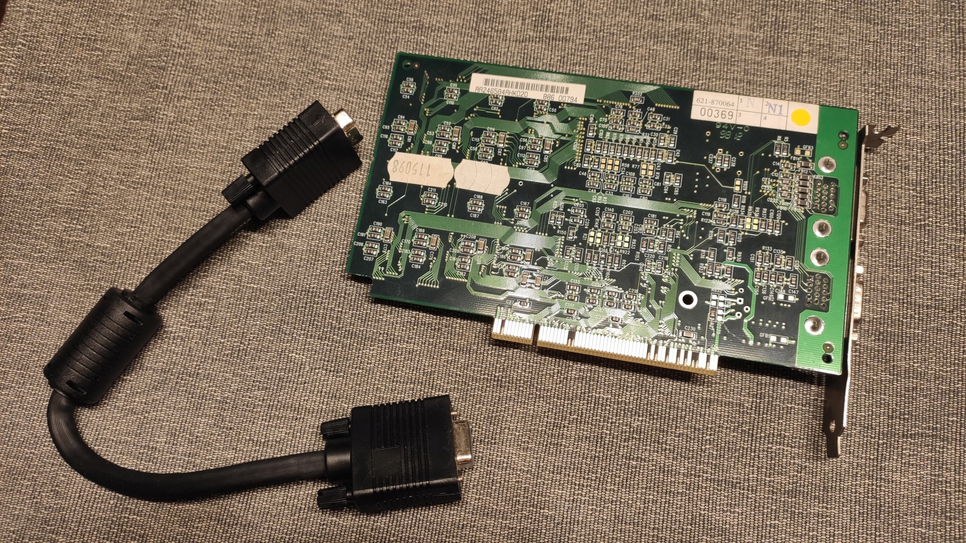 A kártyához hozzátartozik az eredeti, árnyékolt VGA átkötő kábel is.