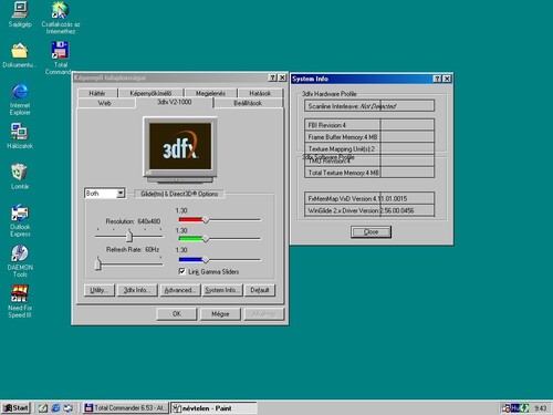 A kártyán lévő memória IC-k némelyikén apróbb felületi karcok vannak, -->Látszik a nem szakszerű tárolás, ám a működést nem befolyásolja. A kártyát Quake1, és NFS3-al teszteltem.