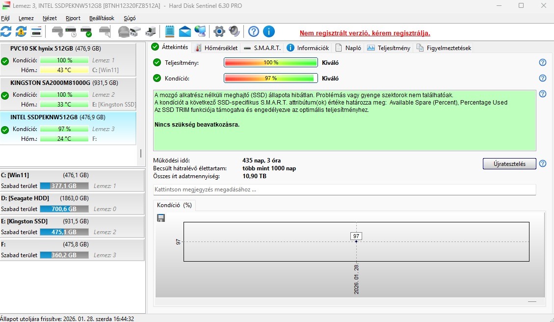 Képek között HDD Sentinel.