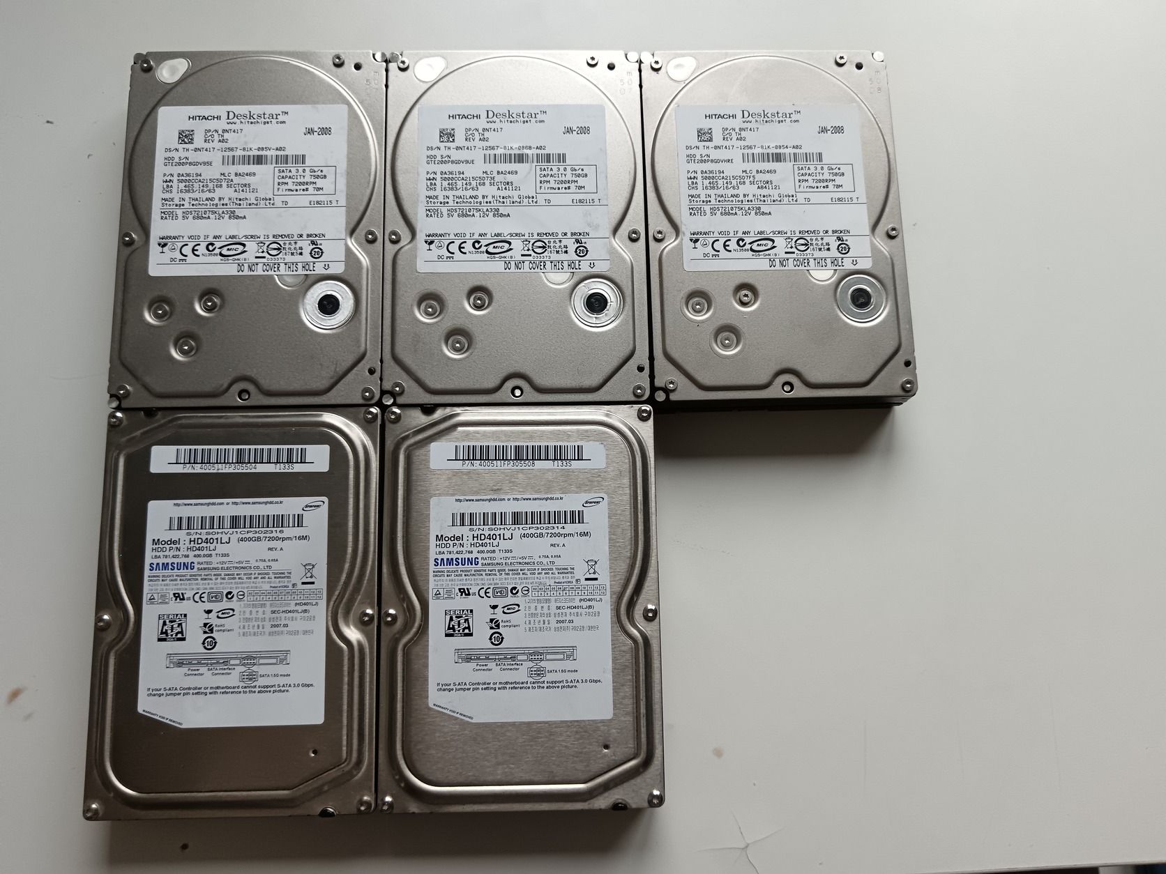 Eladó 2db HD401LJ 400GB-os és 3db HDS721075KLA330 750GB-os 3,5"-os HDD. HDS 100/100%.