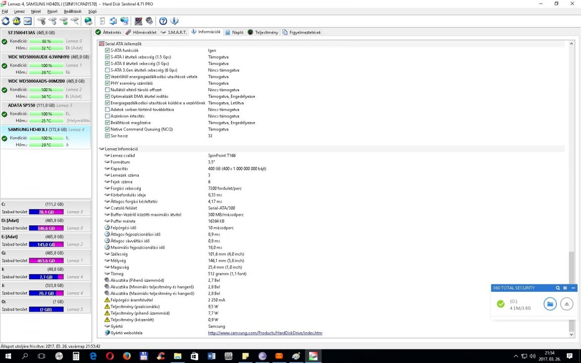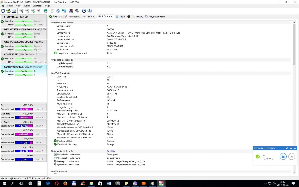 Hard Disk Sentinel programmal tesztelve, melynek az eredményei a képek között megtalálhatóak.
