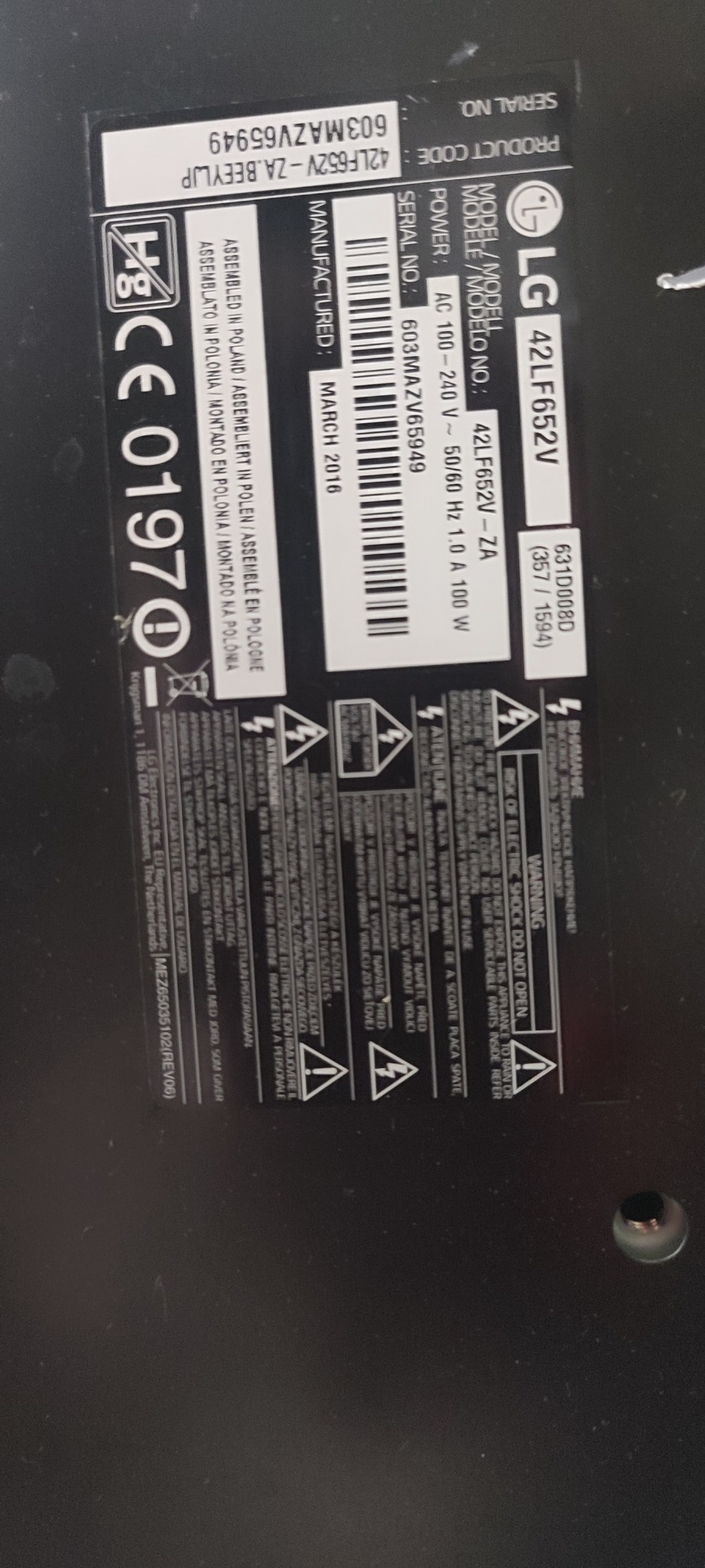 42LF652V kijelző törött
