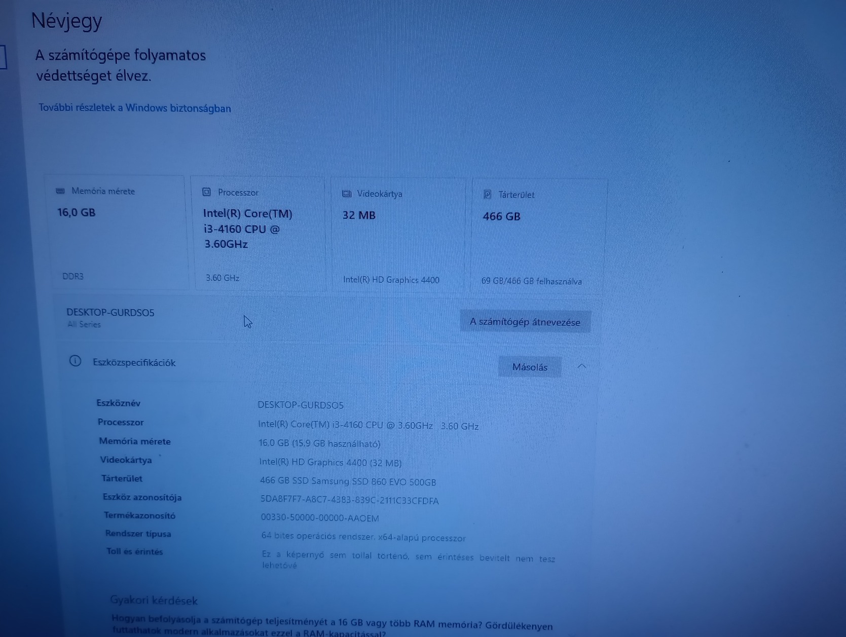 Processzor: i3 4160 2/4 +gyári hűtő, friss paszta.