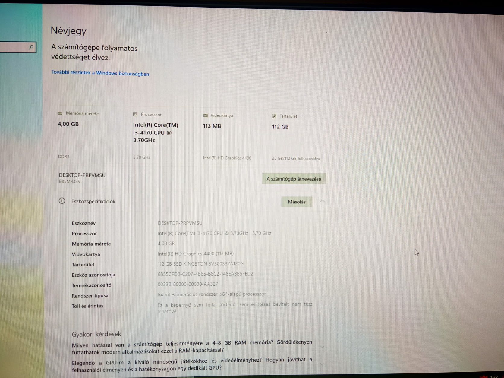 Oprendszer: Win10 (nem aktivált)