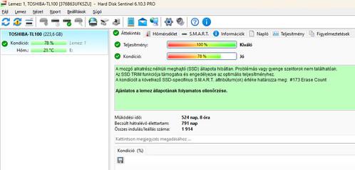 Sentinel képek csatolva. Az SSD-k nem 100/100-ak, de semmi bajuk, rendben működnek és még fognak is jó ideig.