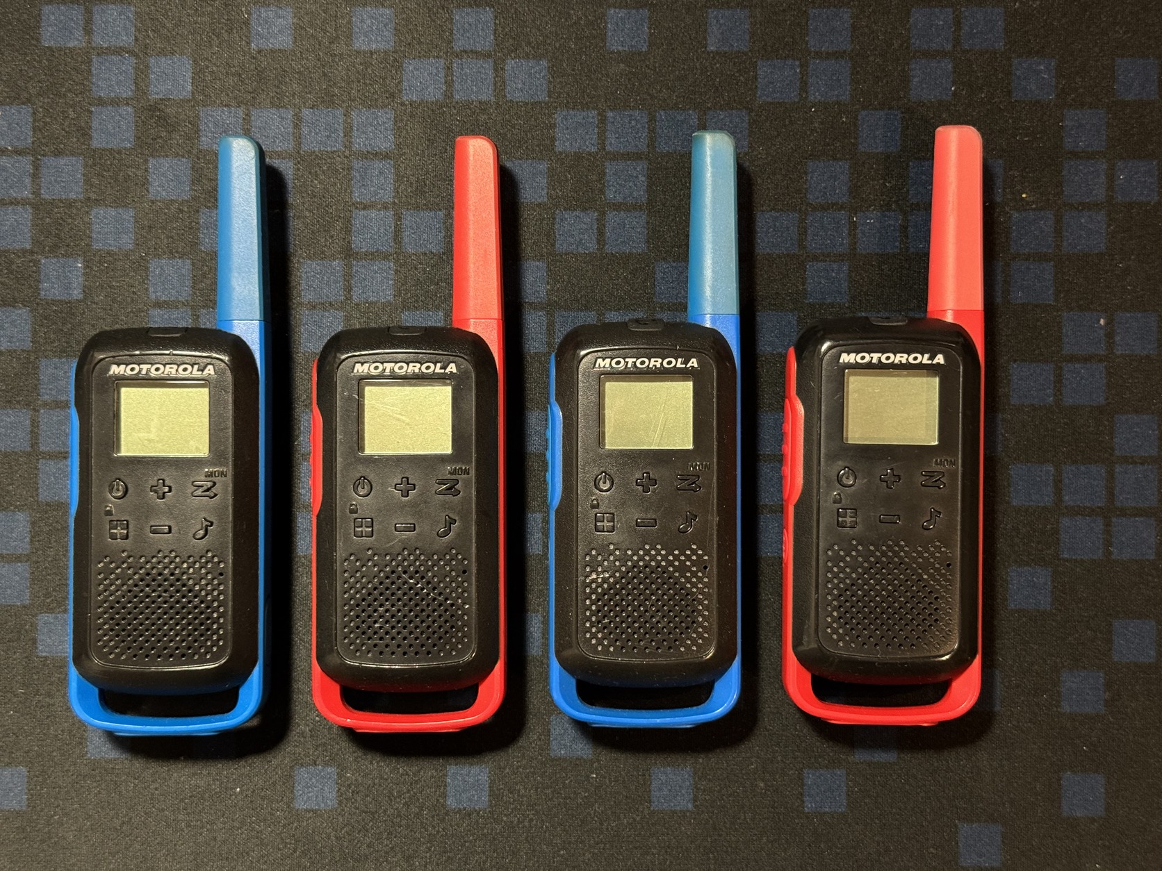 Eladóak a képen látható Motorola T62 adóvevők. Lehetőség szerint egyben adnám őket. Mind a négy működik hibátlanul. Külsőre vannak rajtuk használati nyomok, de nem vészesek. Semmilyen tartozék nincs hozzájuk, csak az adóvevők vannak egyedül. 3db AA elemmel működnek, kipróbálási lehetőség természetesen adott. Többnyire csoportos autós túrák alkalmával volt használva, viszont már egy ideje csak porosodnak, illetve van néhány komolyabb rádióm is.