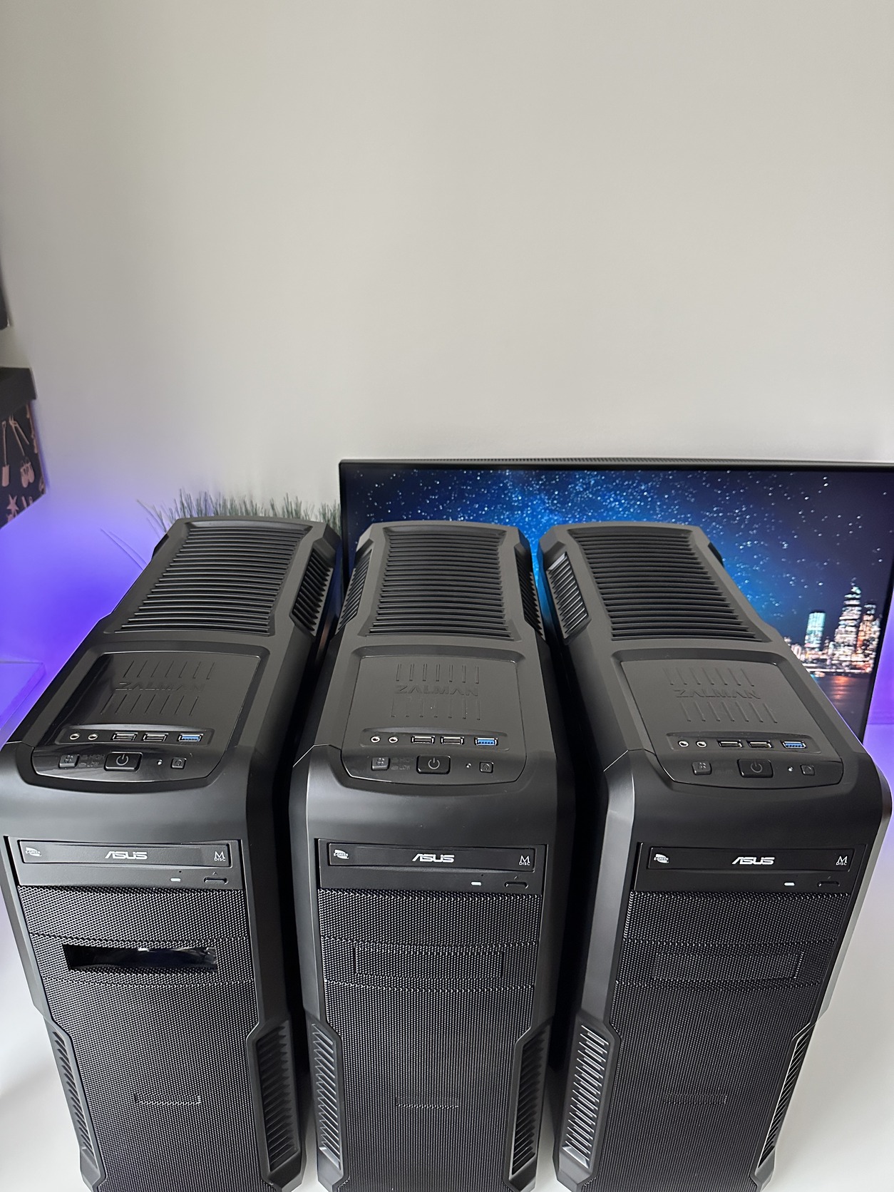 Mindegyikben van egy ASUS DRW-24D5MT dvd iró, és a gyári 12cm kék ledes ventilátoron felül még 3db 12cm Zalman ventilátor.