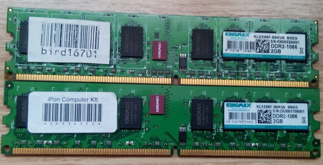 Hibátlanul működő 2 db egyforma 2GB Kingmax 1066Mhz -es modul.