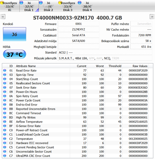 Seagate ST4000NM0033(sata3, 128MB) több darab (kb 30 napot ment mindegyik)
