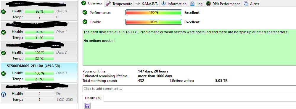 ST500DM009-2F110A merevlemezből több darab eladó, mind hasonló futásidejű és mind 100%.