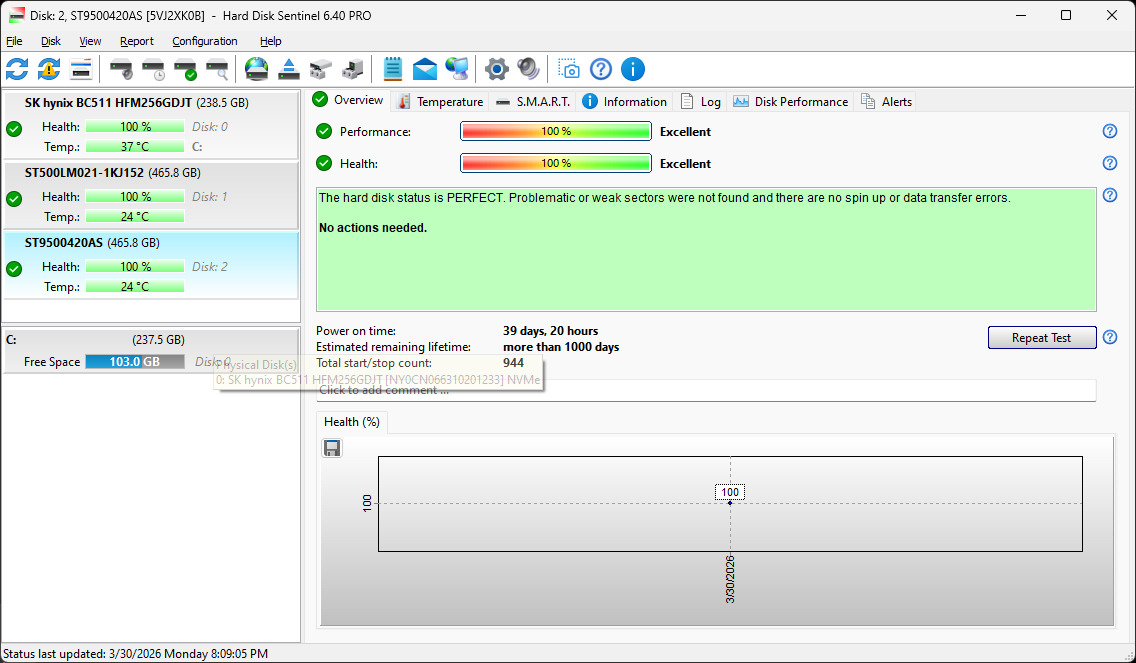 Tökéletesen működik, részleteket a csatolt HD Sentinel képen látni.