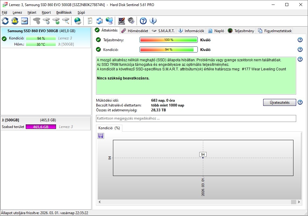 Jó állapot, hibátlan működés, 94%-os kondíció.