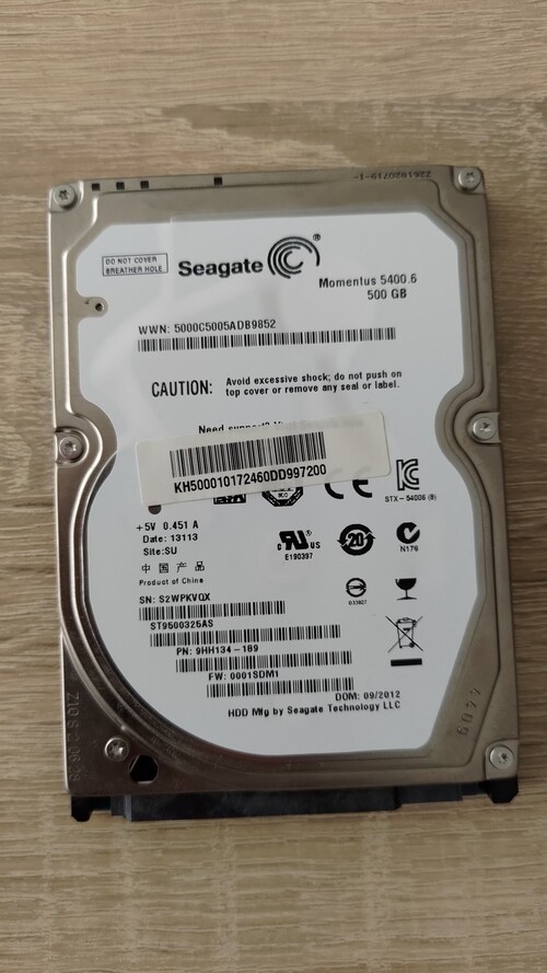 500GB Seagate 2,5" laptop hdd 100/100