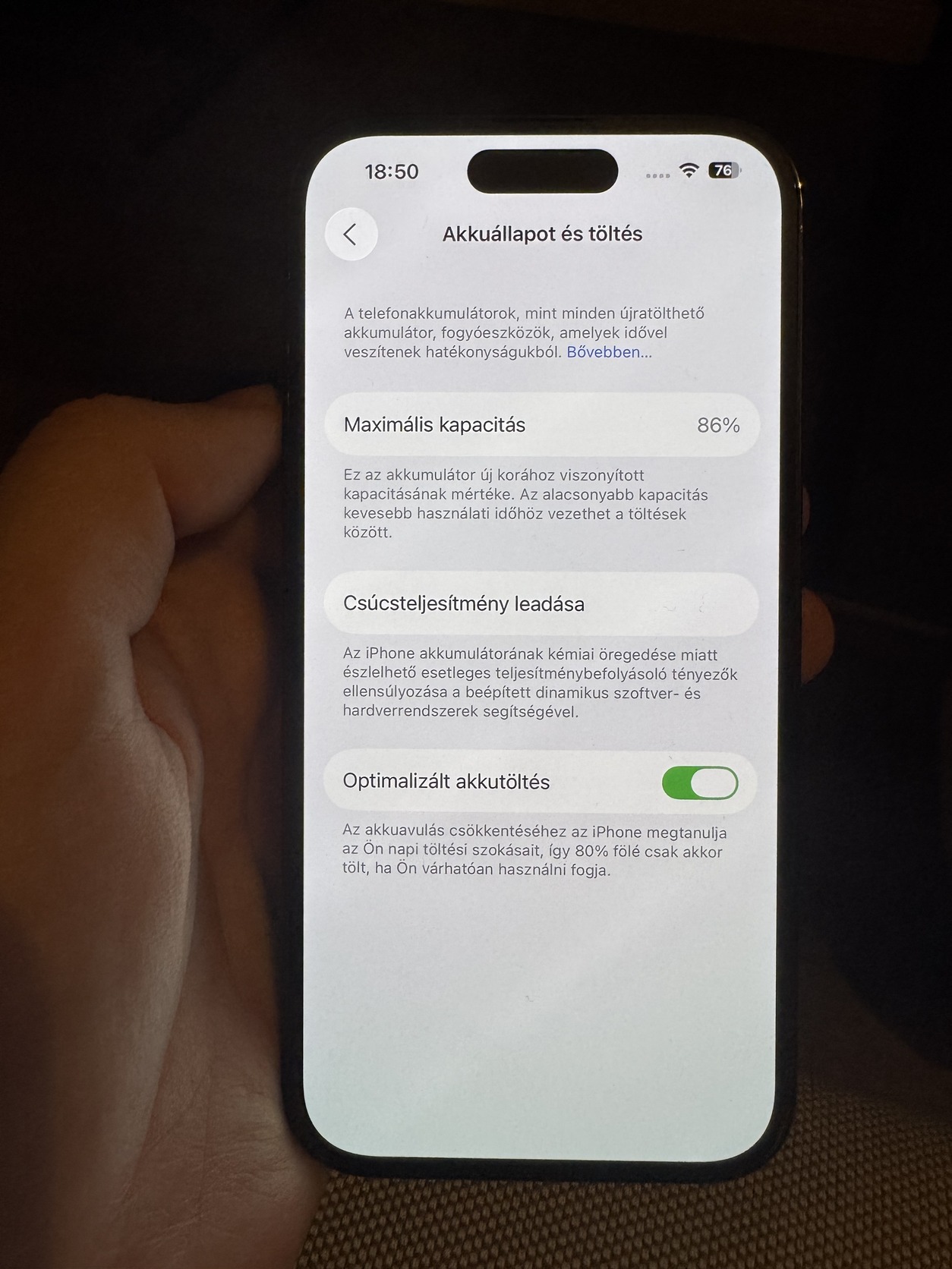 Akkumulátora 86%-on van.