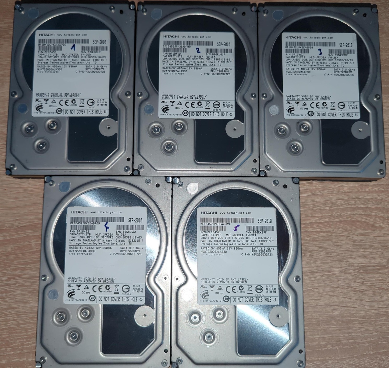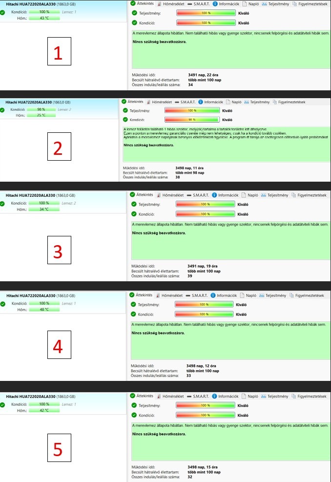 Eladó 5 db Hitachi 2 TB-os HDD: