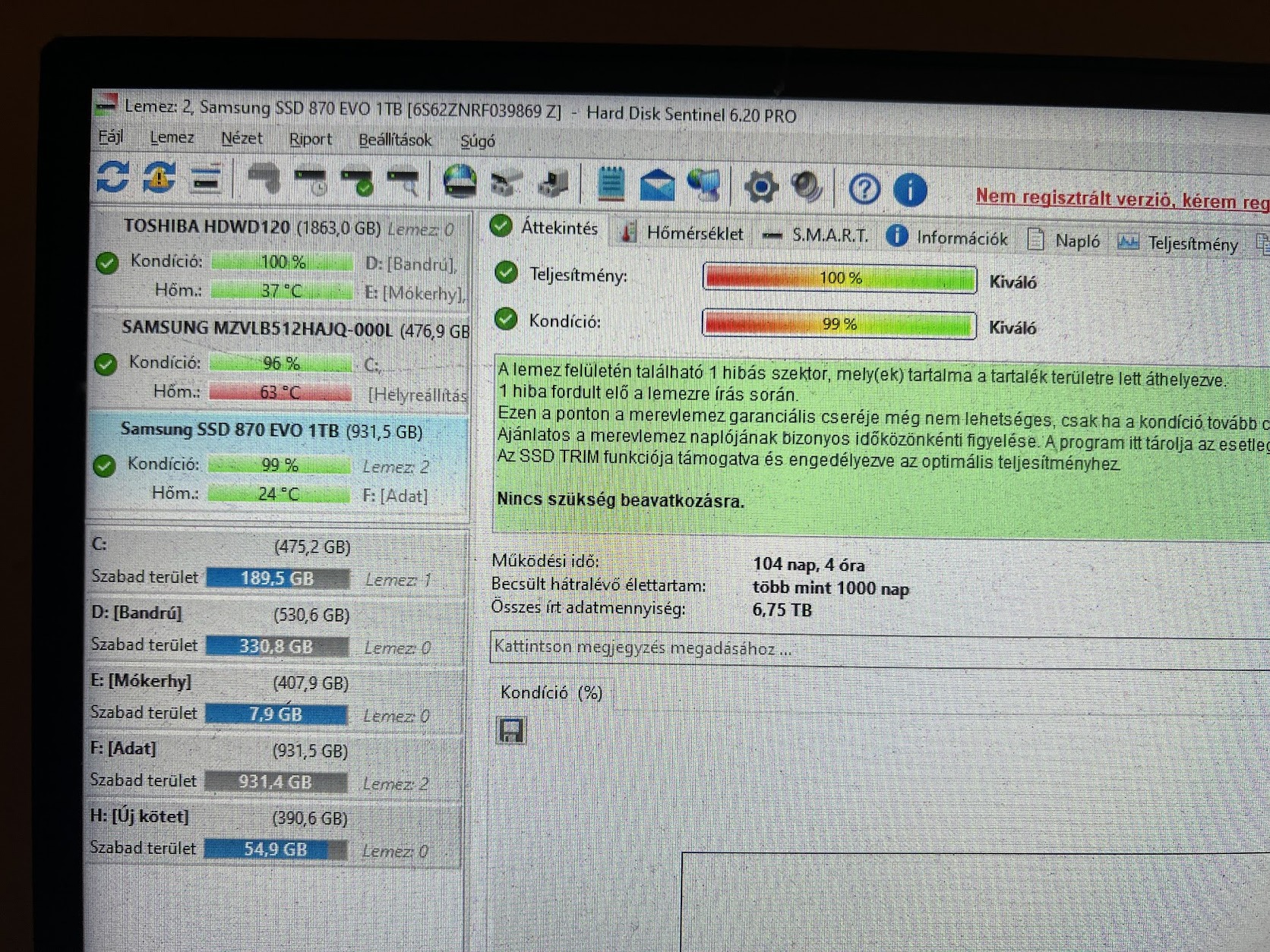 1db 1Tb Samsung 870 Evo 104 nap - 32.000ft