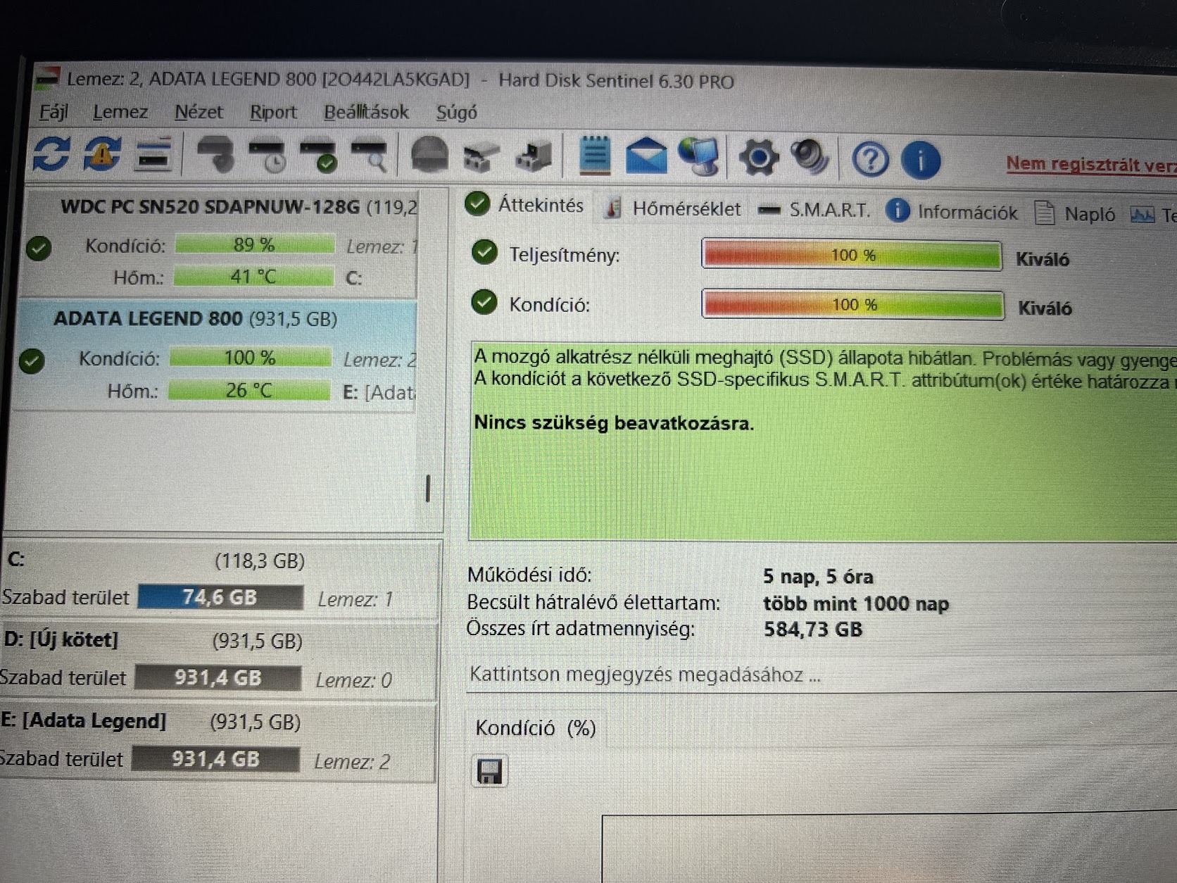 1db Adata Legend 5 napot futott 35e
