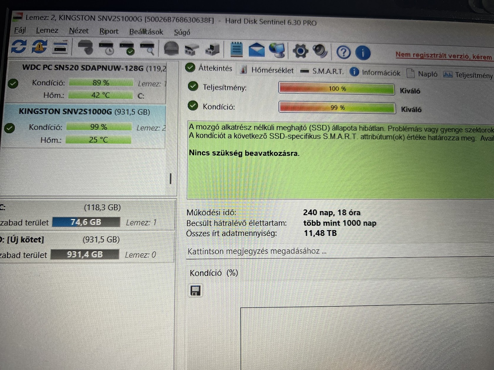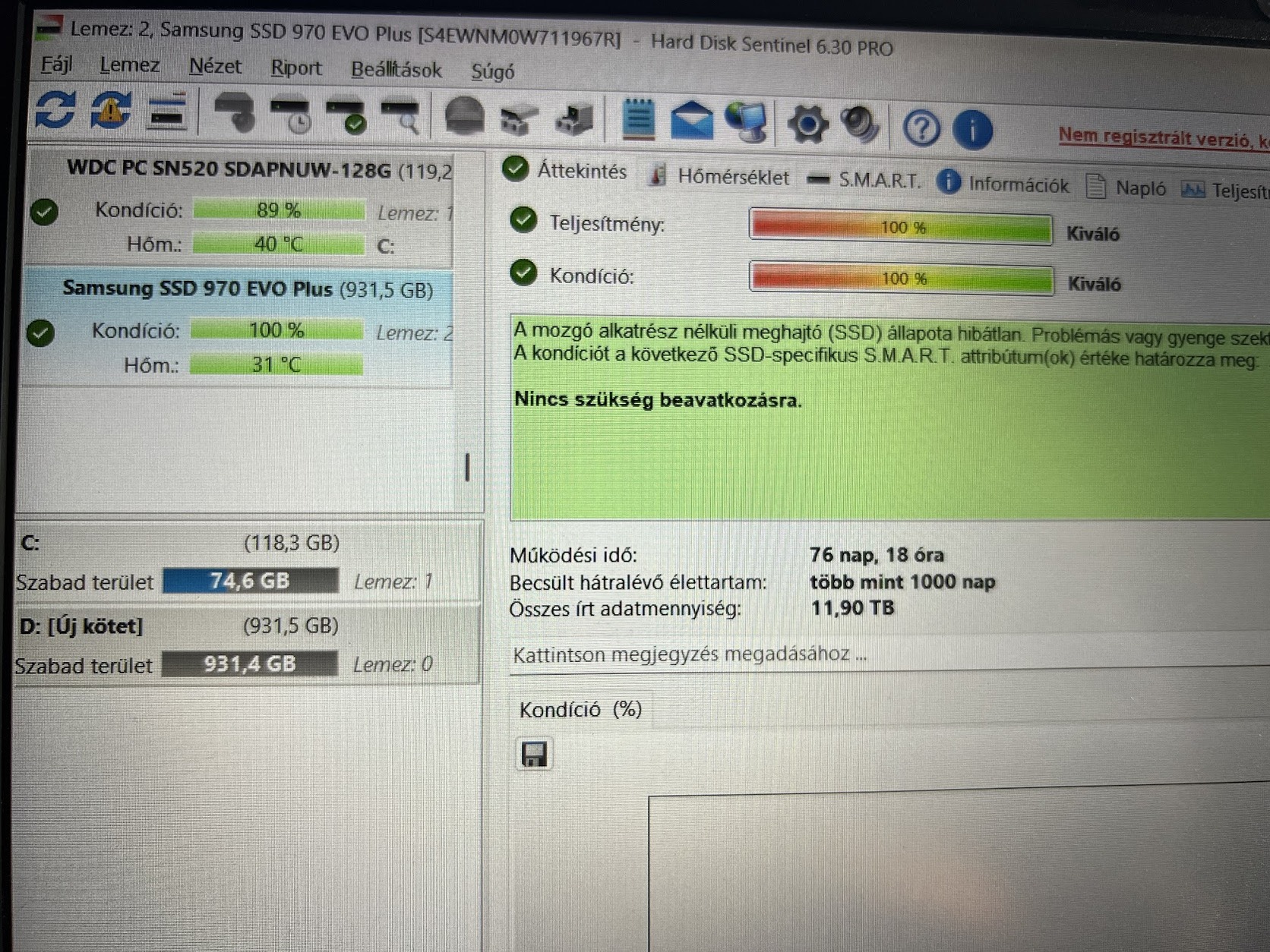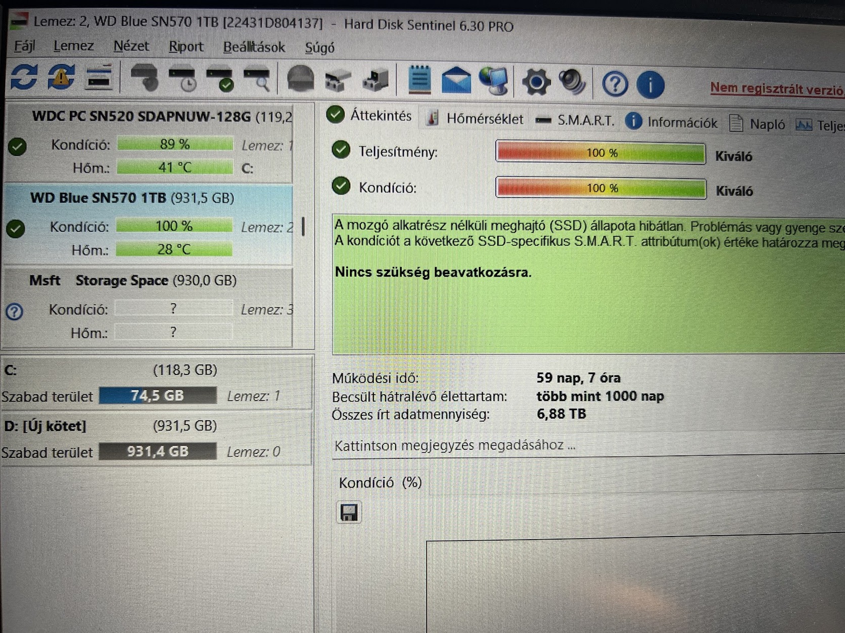 2db WD Blue SN570 59 nap 35e / 260nap 30e