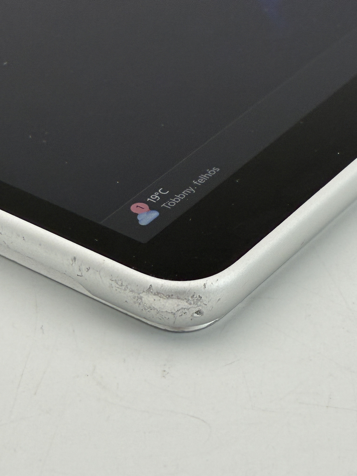 3db whitespot van a képernyőn, használat közben szerintem nem zavaróak annyira, egyszínű háttéren látható jobban, lásd fehér hátterű kép. Karcok is jól láthatók a képeken.