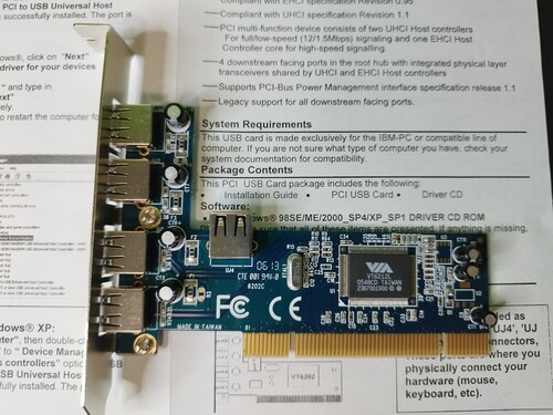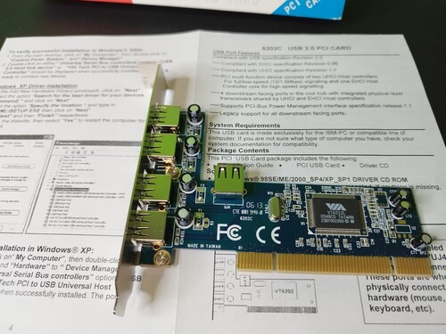 Régi gépekhez USB kártya, 4 portos, USB 2.0