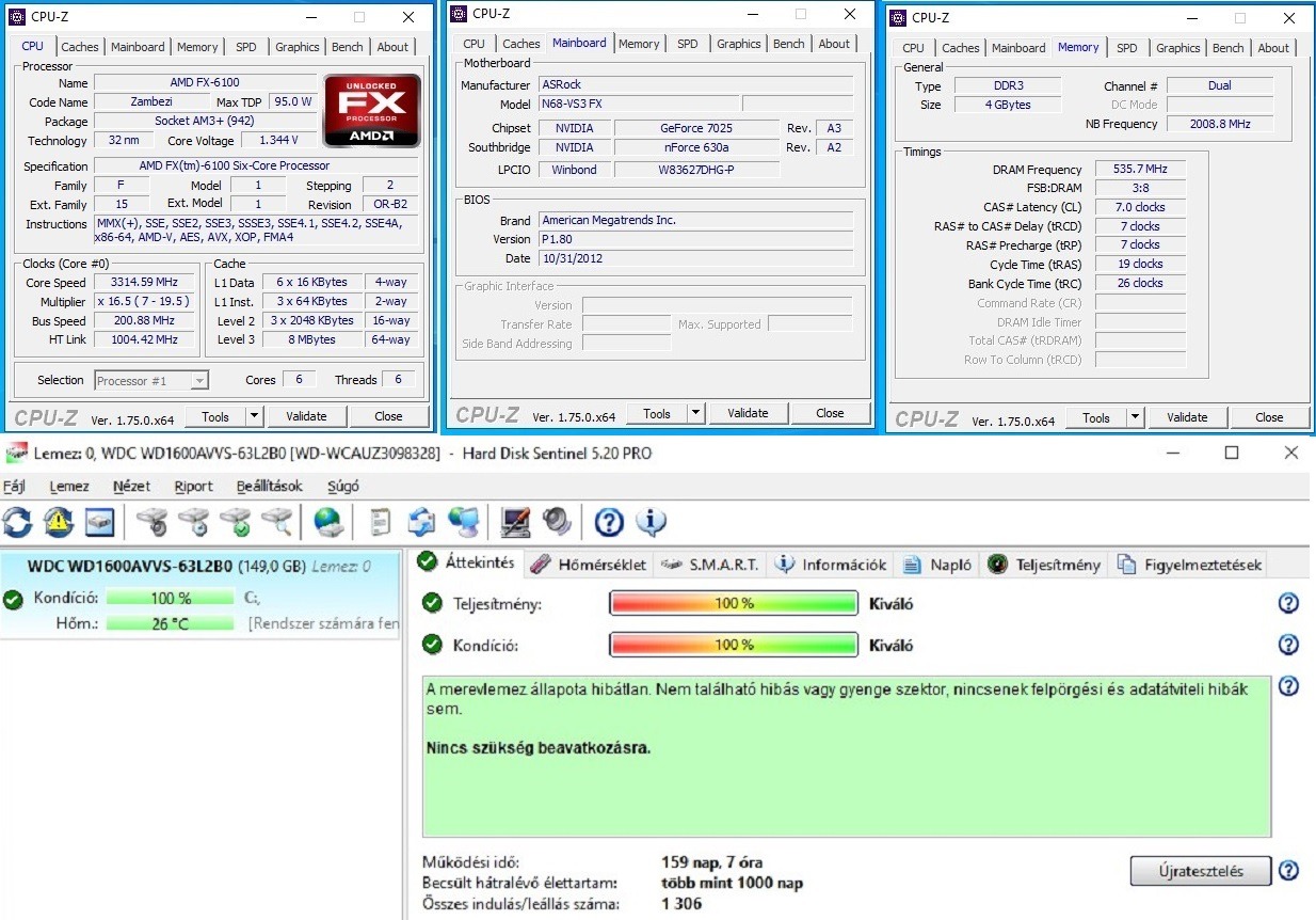 A régi gazdája szerint, volt néha mikor csak a másodikra indult, de én feltettem egy új telepítést egyből felment, és nem vettem észre semmit! De mivel az előéletéről nem tudok egyebet, gyakorlatilag majdnem proci áron adom, a többit vedd ajándéknak!