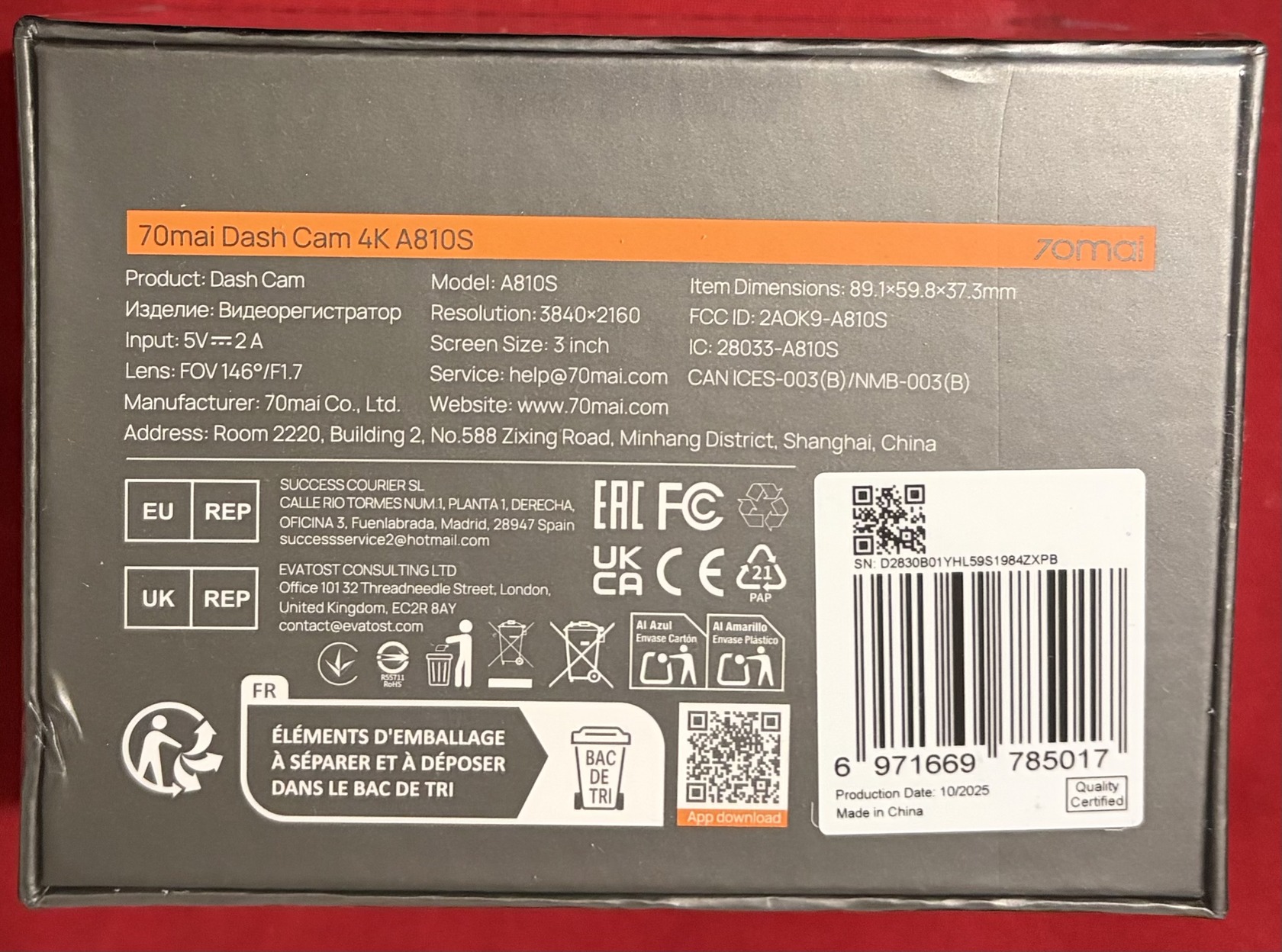 70mai Dash Cam 4K A810S - bontatlan