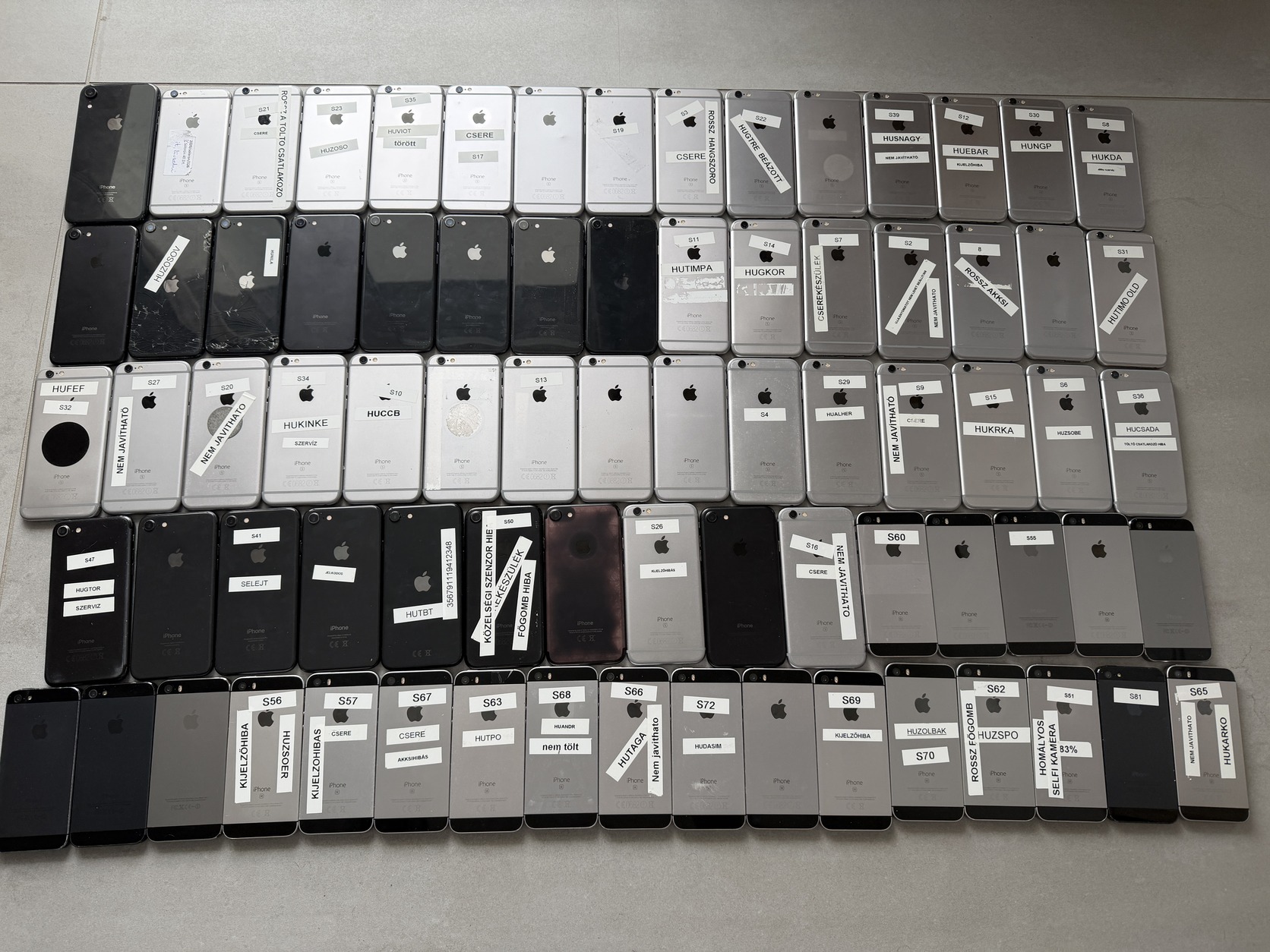 Az innen származó csomagok régebbi részében nagyjából 15-20% használható volt illetve javítható a maradék készülékekből tehát ha van időd bőven vissza hozza az árát.Jelenleg kapacítás hiány miatt nem tudunk vele foglalkozni. Néhány készüléken van felirat azoknál adott a hiba. 1500/db áron azaz 115500 Forint áron vihető a komplett csomag.