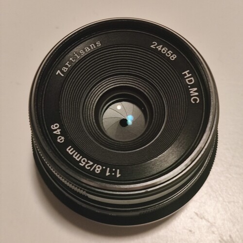 Eladó 7artisans 25mm f1.8 objektív Fuji X vázra. Karc, por és gombamentes, gyári dobozában, fém napellenzővel. Csere nem érdekel.