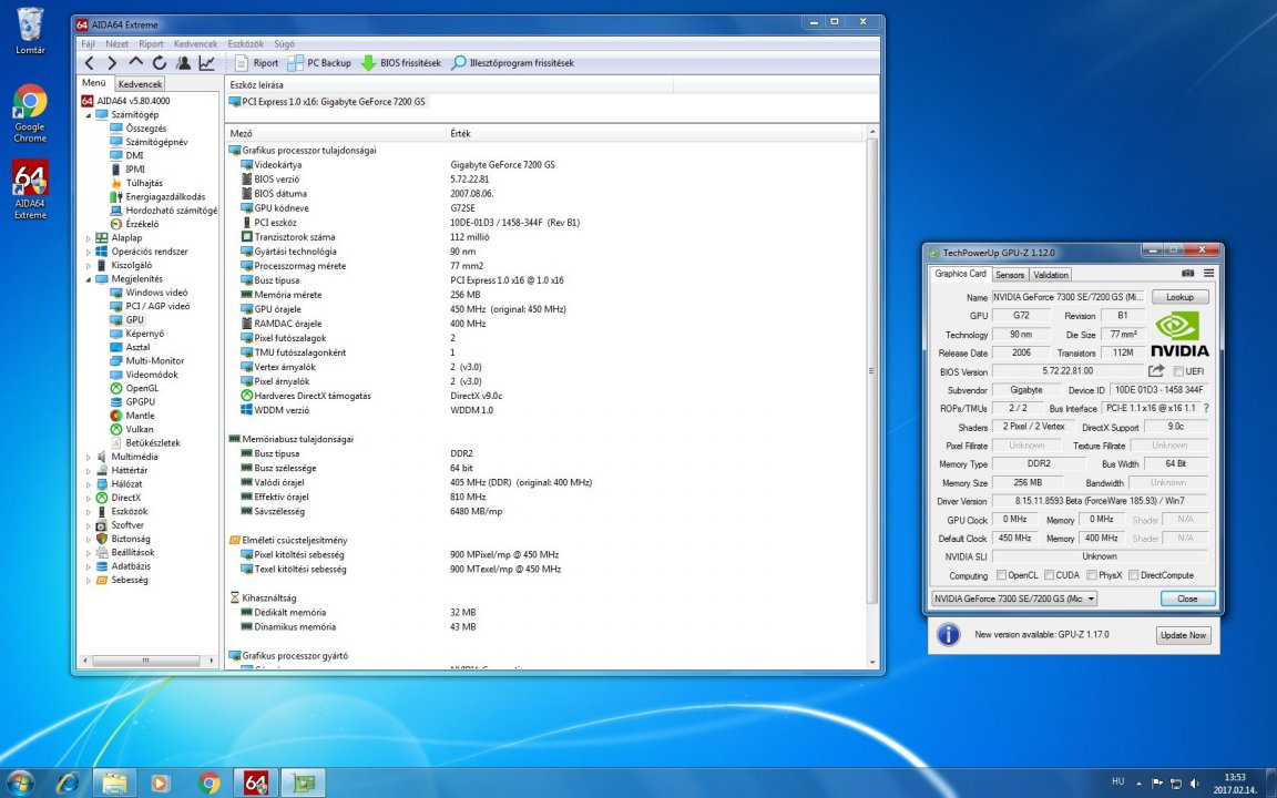 7db Gigabyte GeForce 7200GS PCI-E 256MB videokártya