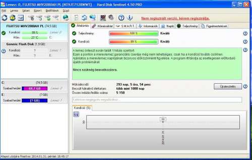 80gb FUJITSU MHV2080AH PL notebook merevlemez. HDD Sentinel: 100/99