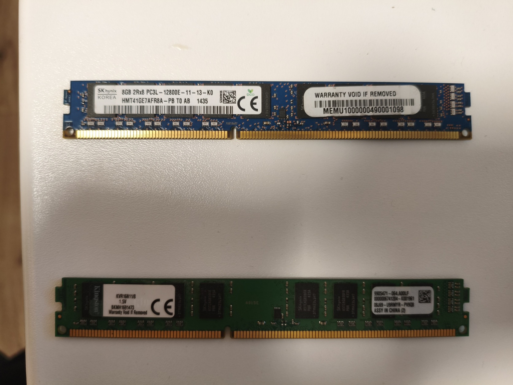 SK Hynix 8 GB DDR3 1600 MHz ECC 1.35V (HMT41GE7AFR8A-PB)Kingston 8 GB DDR3 1600MHz 1.5V (KVR16N11/8) -> ELADVA