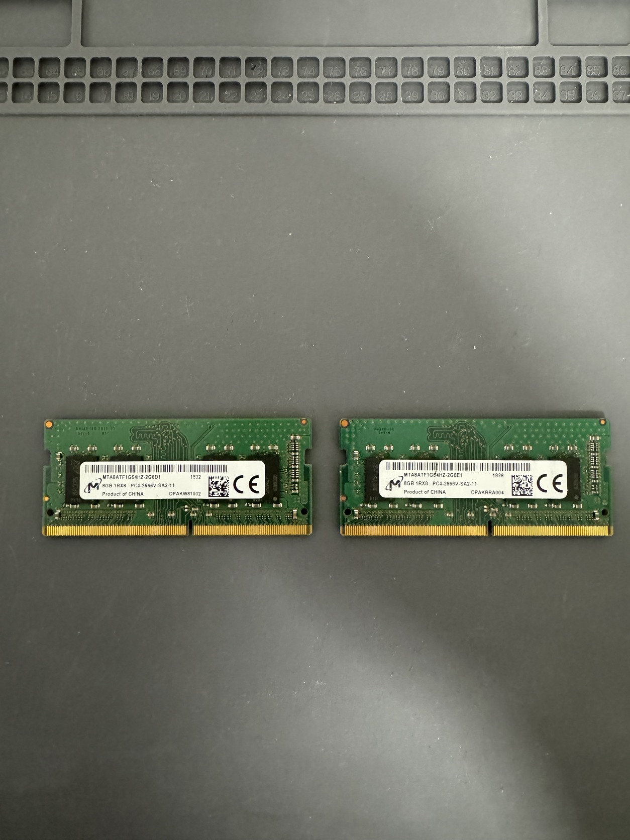 Eladó a képen látható 2 darab - Micron 1Rx8 - 8 GB PC4 DDR4 notebook RAM - 2666 MHz.