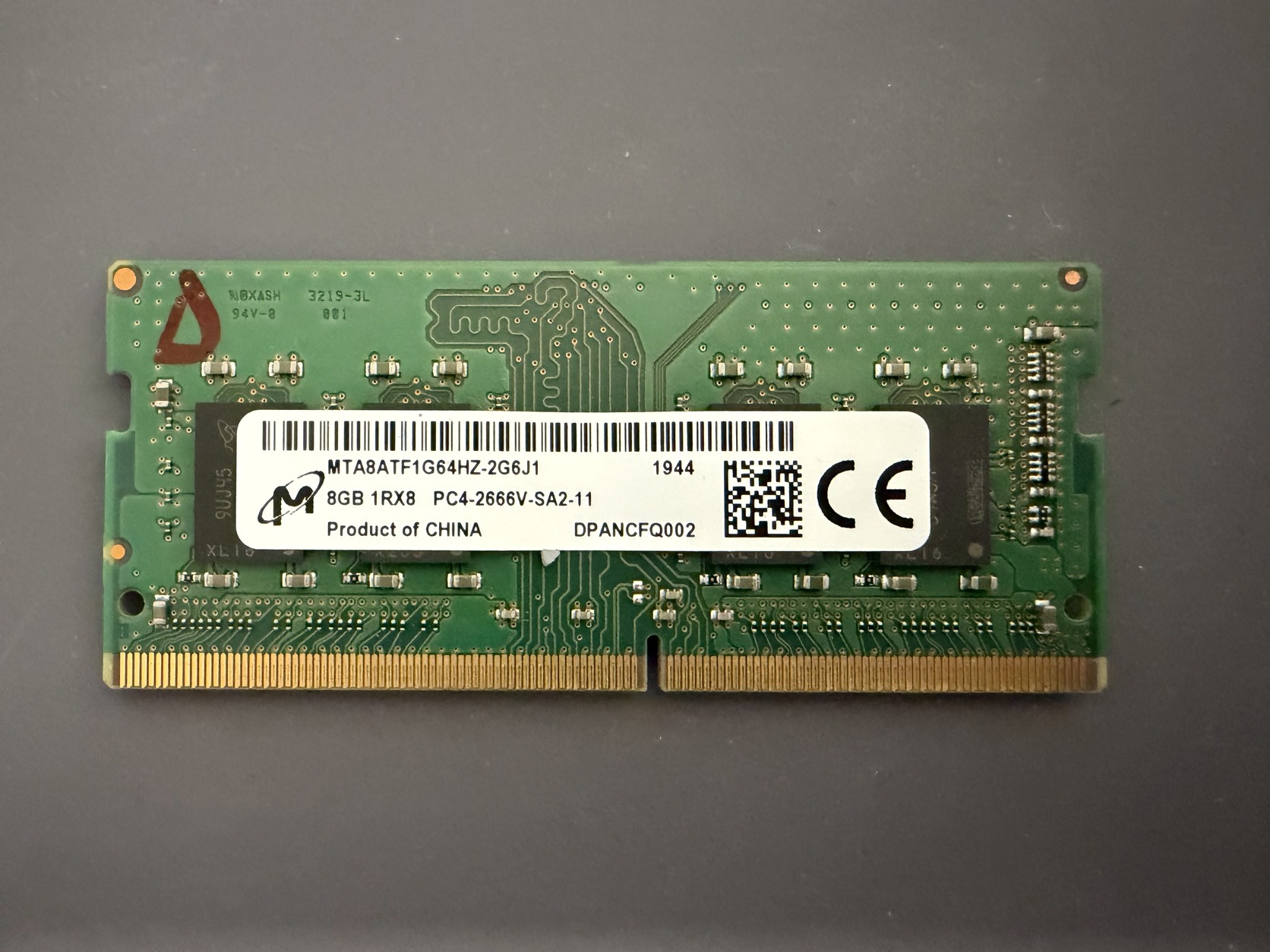 Eladó a képen látható Micron 1Rx8 - 8 GB PC4 DDR4 notebook RAM - 2666 MHz.