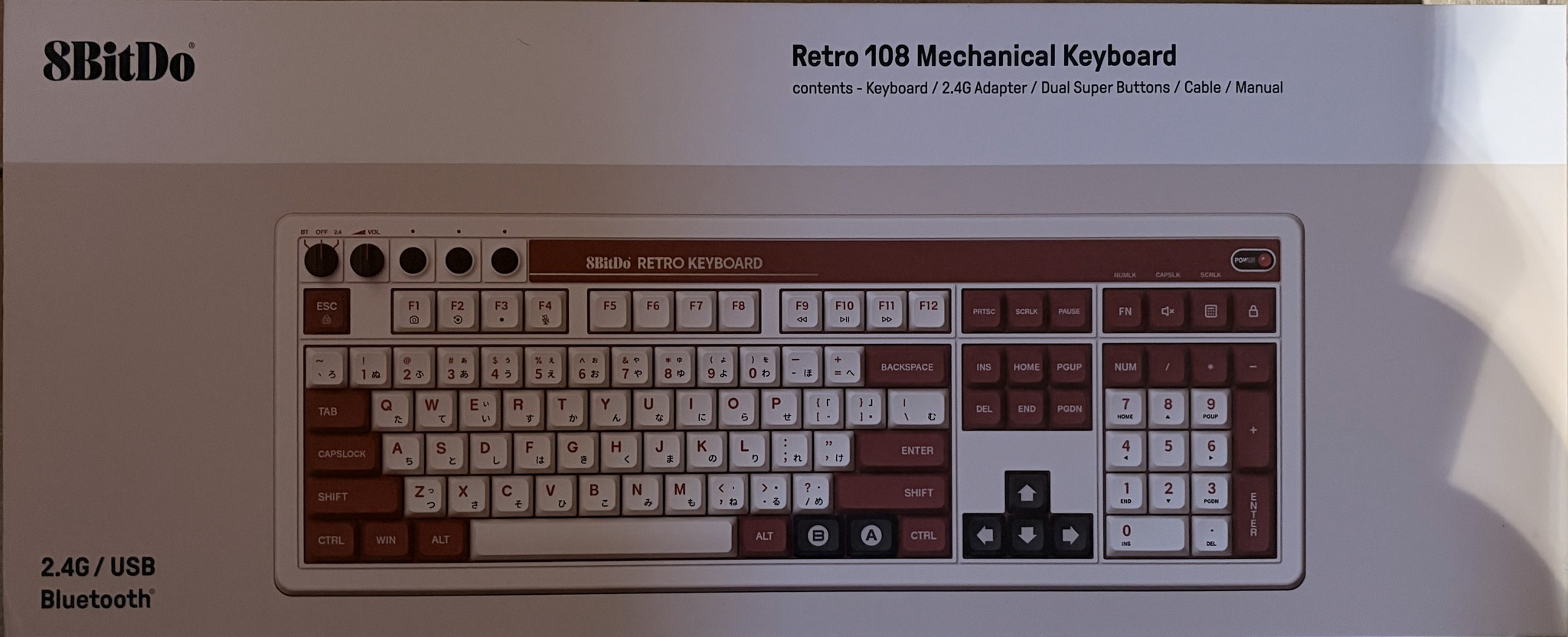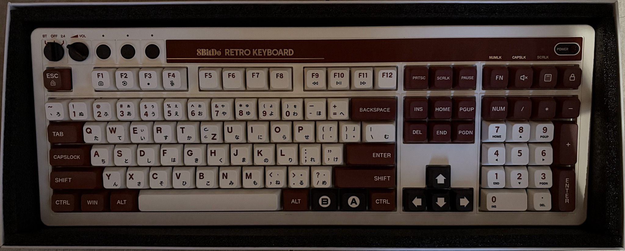8BitDo Retro Mechanical Keyboard (Fami Edition) with Integrated Numpad + Dual Super Buttons - UK