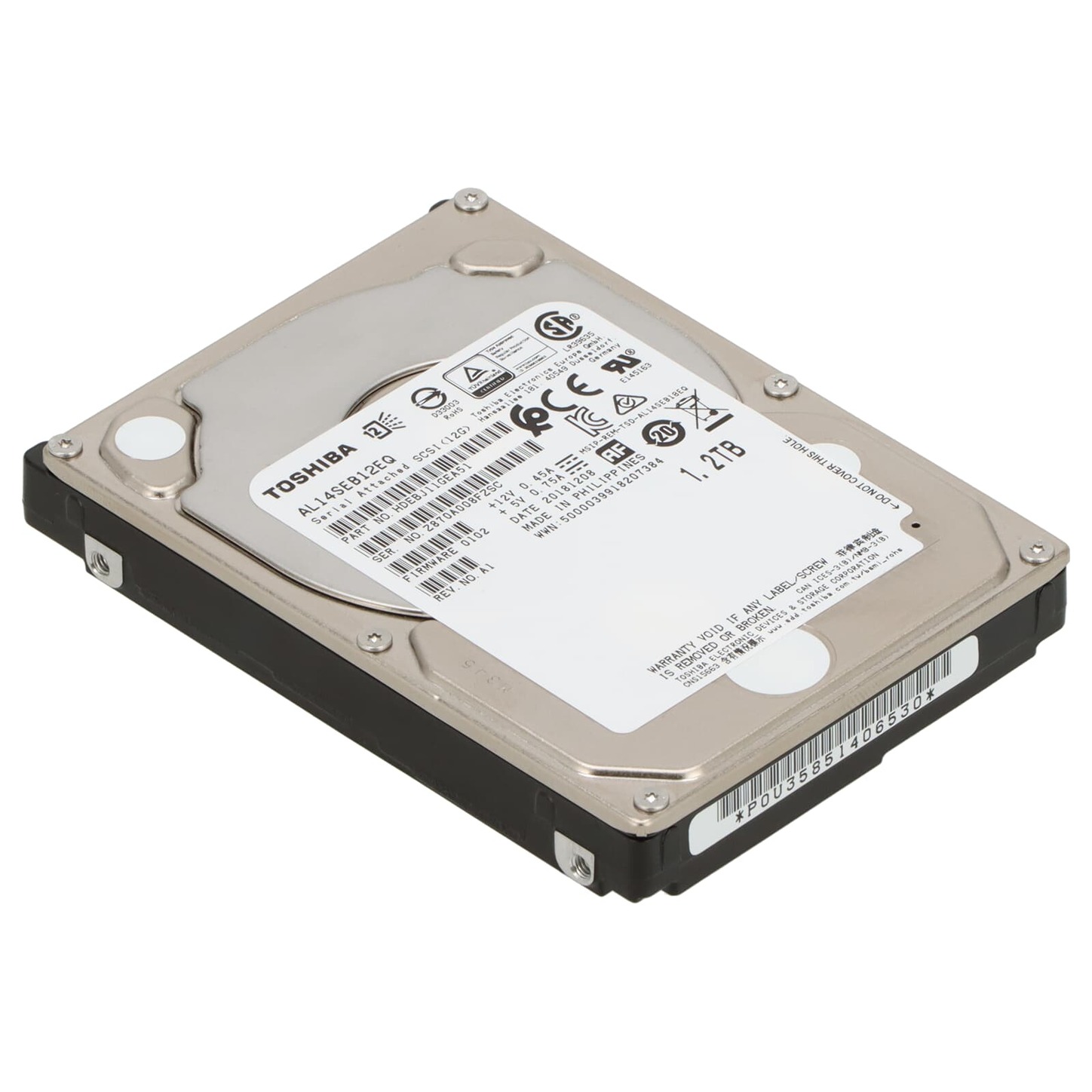 8db Toshiba Allegro SFF (2,5") / 1.2TB / 128MB / 10500RPM / SAS3 / 12Gbit / AL14SEB12EQ / 100/100