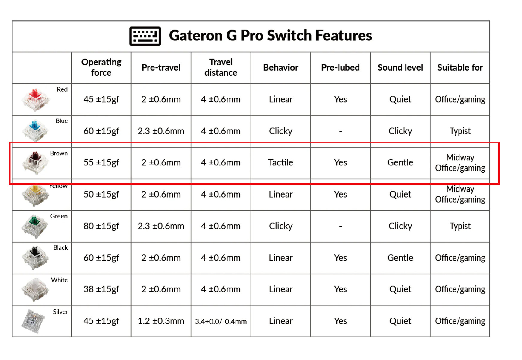 95 db Gateron G Pro Brown