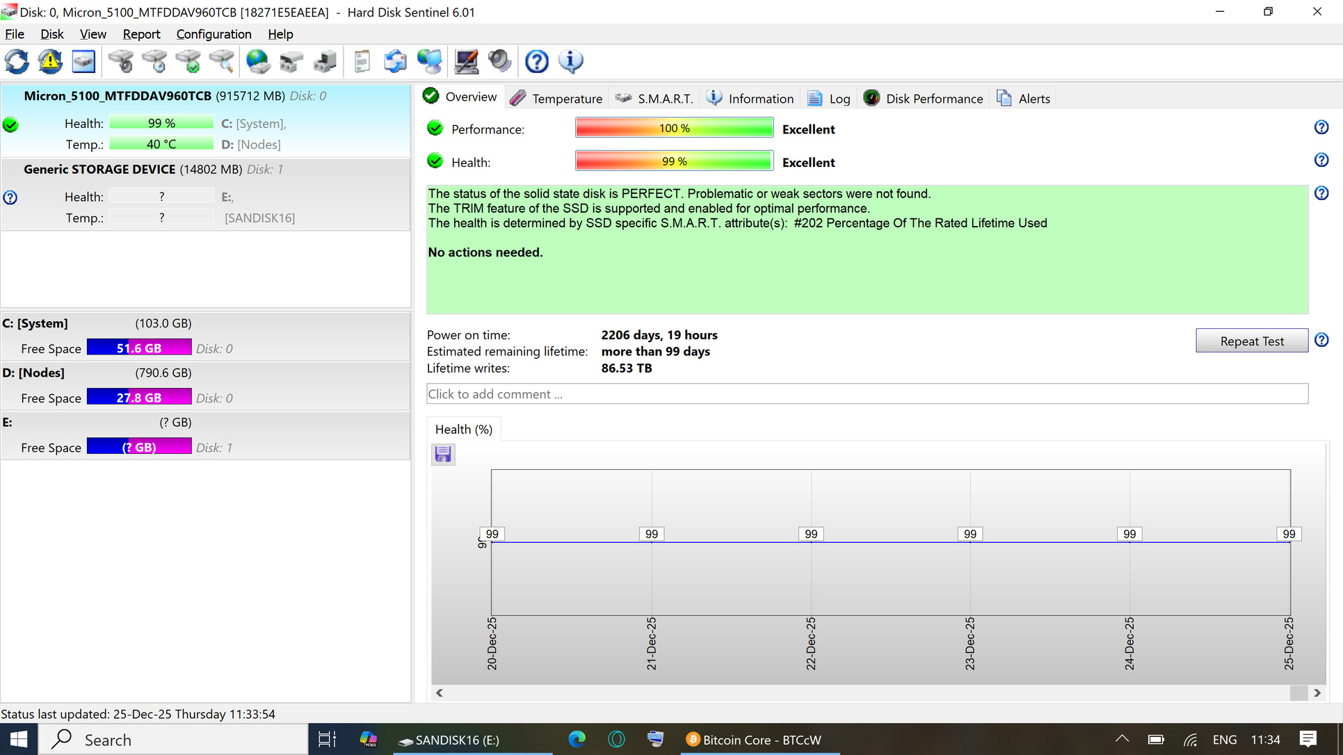 KB öt évet ment egy node-ban. Kevés írás (86Tb). Nem volt gond vele, csak már kezdett betelni.