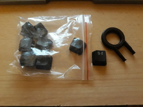 A narancs billentyűk cserélhetőek sima feketére, amelyek a csomagban mellékelve vannak.