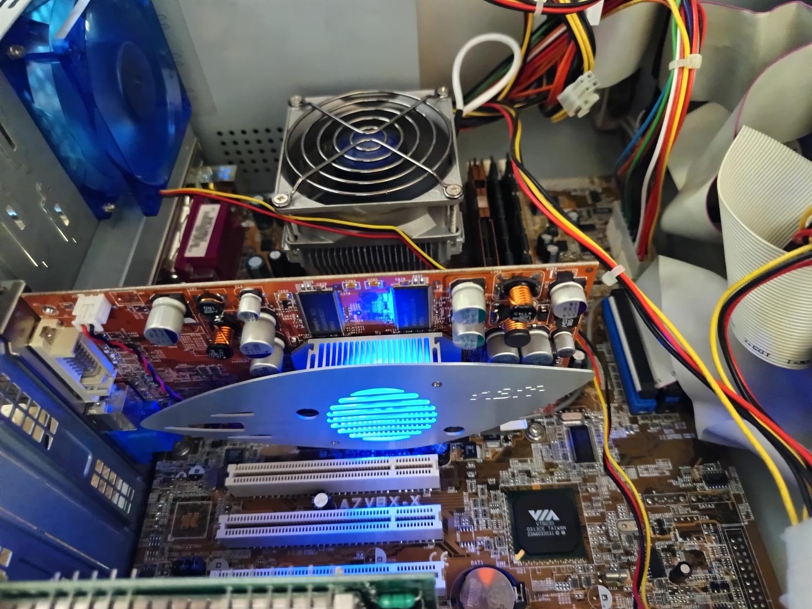 Szép állapotú és tökéletes működésű AGP 8x kártya eladó. Gyári, kéken világító ventivel.