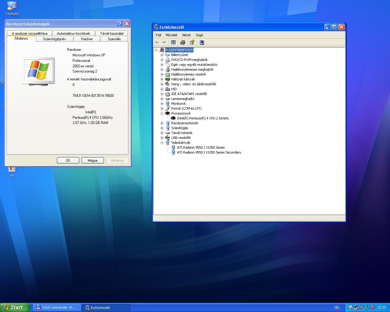 Hibás pupos kondik nélkul P4 2.66 procival 2*512 ddr memóriával + Ati 9550
