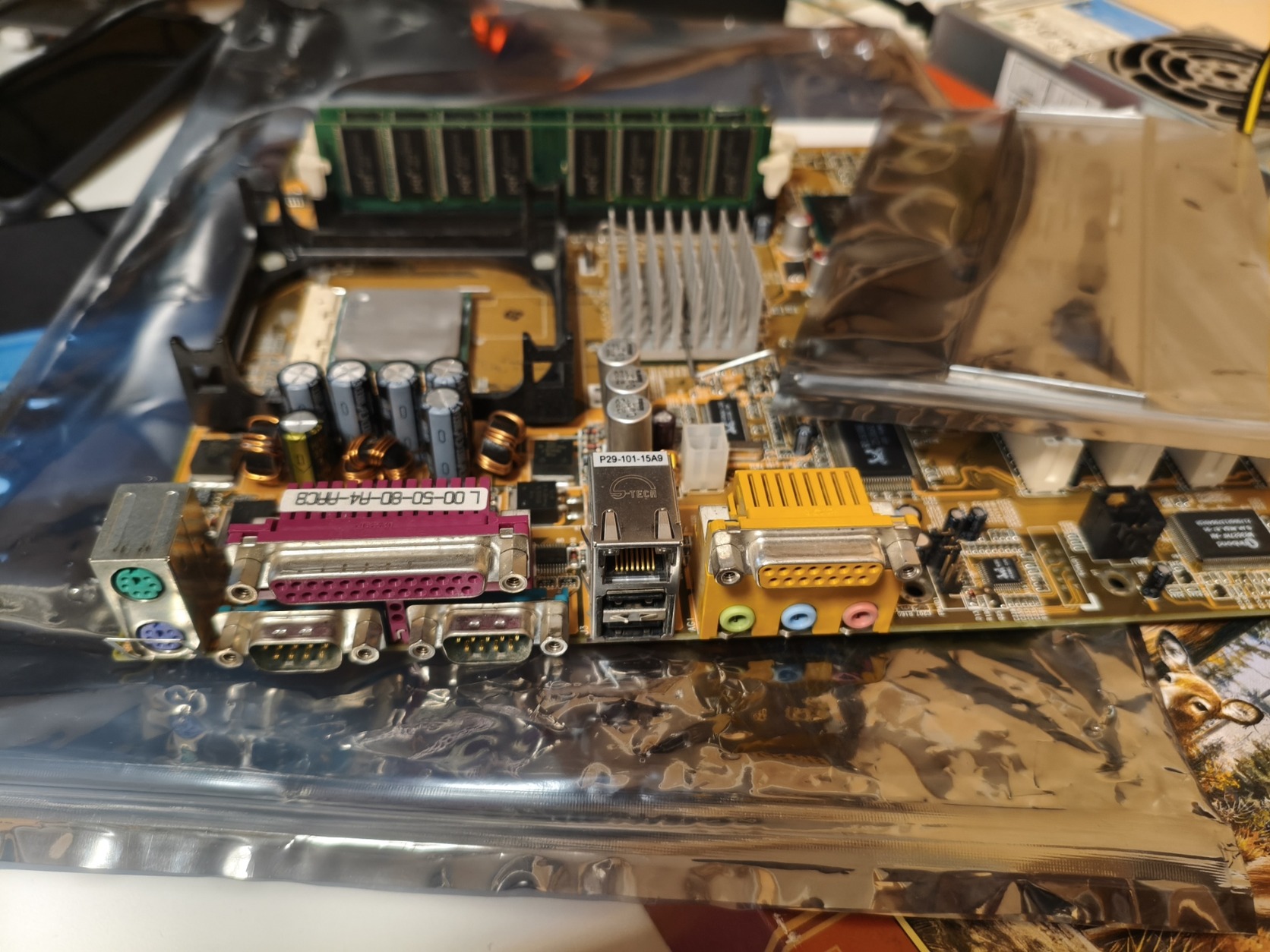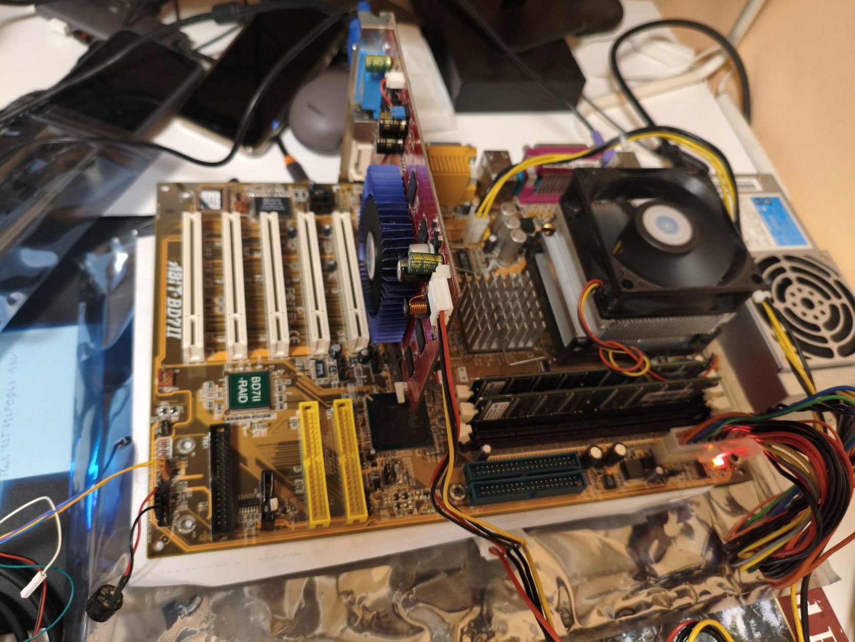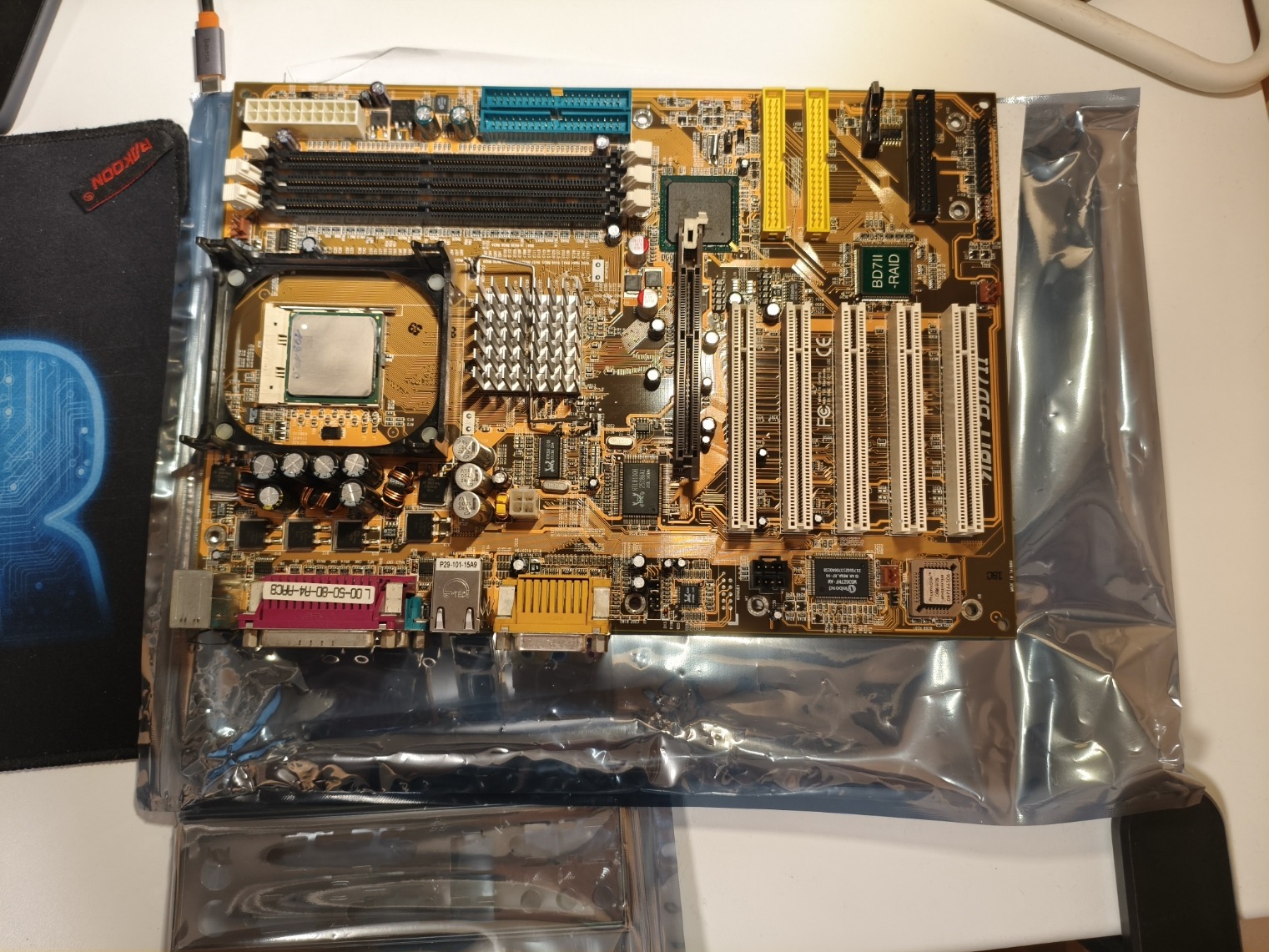 Eladó egy Abit BD7II RAID alaplap I/O shield-del, Pentium 4 1.8 GHz CPU-val, 2x 512 MB DDR400 MHz RAM-mal.